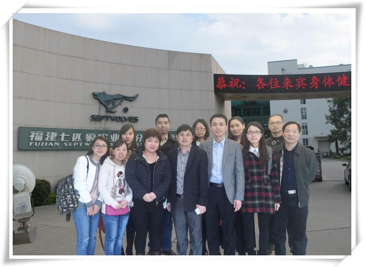 1月24日,应七匹狼集团的邀请,我中心一行10人赴七匹狼公司本部参观学习。2014年秋季,七匹狼集团组织了77名骨干员工报名参加我中心开展的东华大学纺织工程、染整技术和现代纺织技术等专业学历教育。