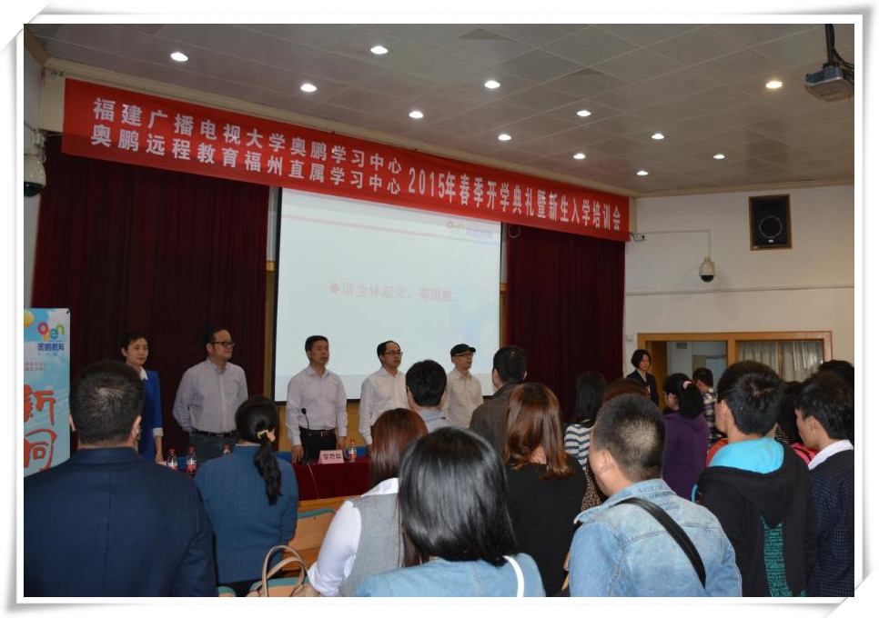2015年4月25日上午,奥鹏远程教育福州直属学习中心(暨福建奥鹏远程教育学习中心)在福建广播电视大学电教楼阶梯教室举行了2015年春季开学典礼和新生入学培训会。福建电大远程教育中心、中央电大奥鹏远程教育华南区总监、福建办负责人等领导出席了开学典礼,学习中心各部门负责人、班主任及新生共200多人参加了会议。