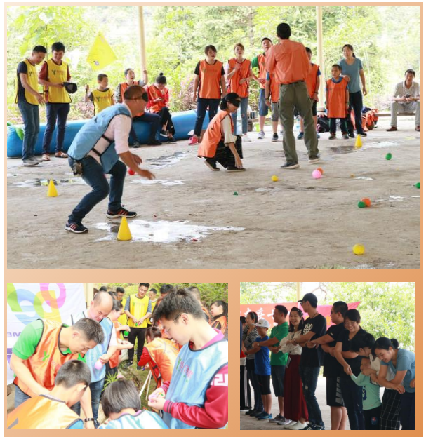 以特殊的方式进行开场仪式,用不一样的开始,收获不一样的结果。不一样的开场的形式,让大家放下负担、放下压力,跟着音乐的节奏一起进入欢乐的游戏当中。教练按照不同队服分成6个代表队,各队选出队长,通过趣味游戏进行热身互动。
