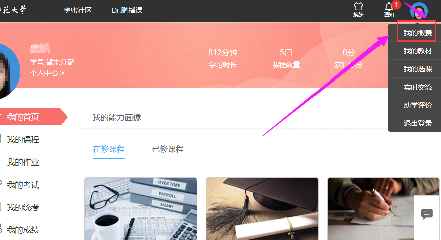 微信关注公众号【奥鹏教育微学吧】,登录学习平台,选择我的钱包后付款即可。