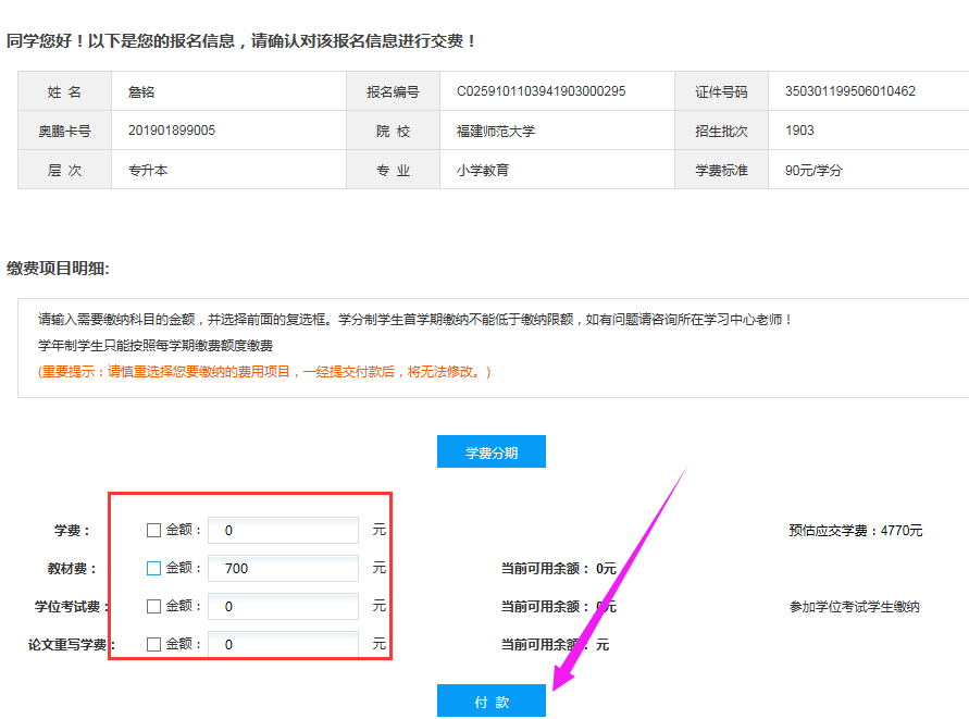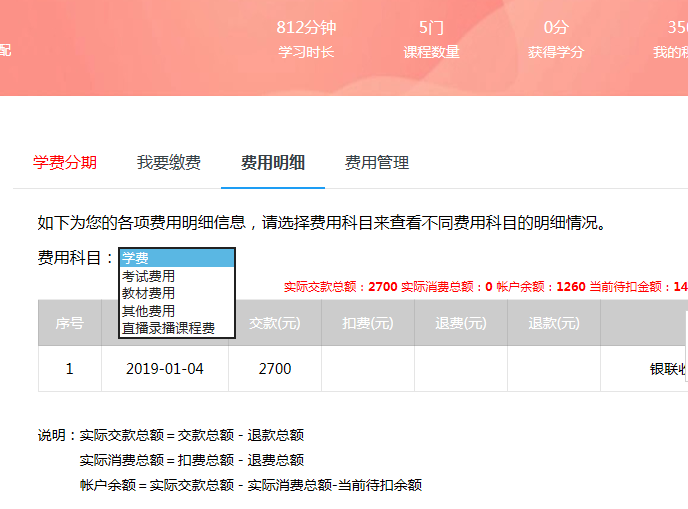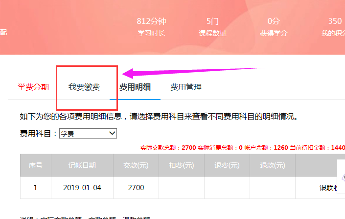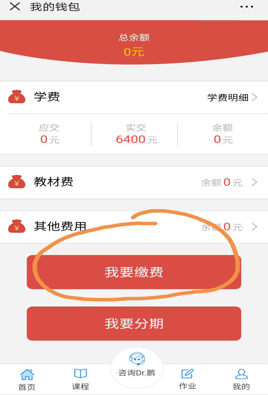 答:询问招生老师,是否有存在未上传学习平台的费用,并记住之后费用自行上交平台。