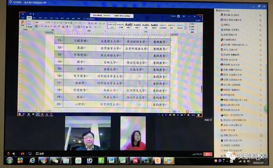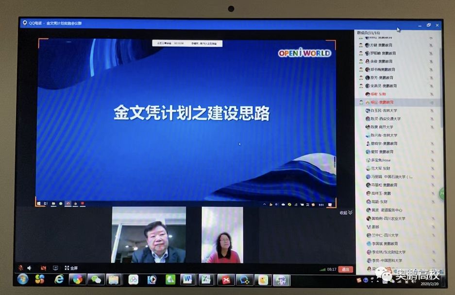 2月20日上午,由全国高校远程教育协作组、高校继续教育数字化资源开放和在线教育联盟推动,奥鹏教育与首批“金文凭”计划建设高校通过在线会议形式,召开了“金文凭”计划实施与专业建设启动会,有26所远程教育试点高校的继续教育学院(网络教育学院)领导、学科专家、专业老师和奥鹏教育各业务负责人,共81人参加了会议。此次会议召开标志“金文凭”计划进入实质实施阶段。