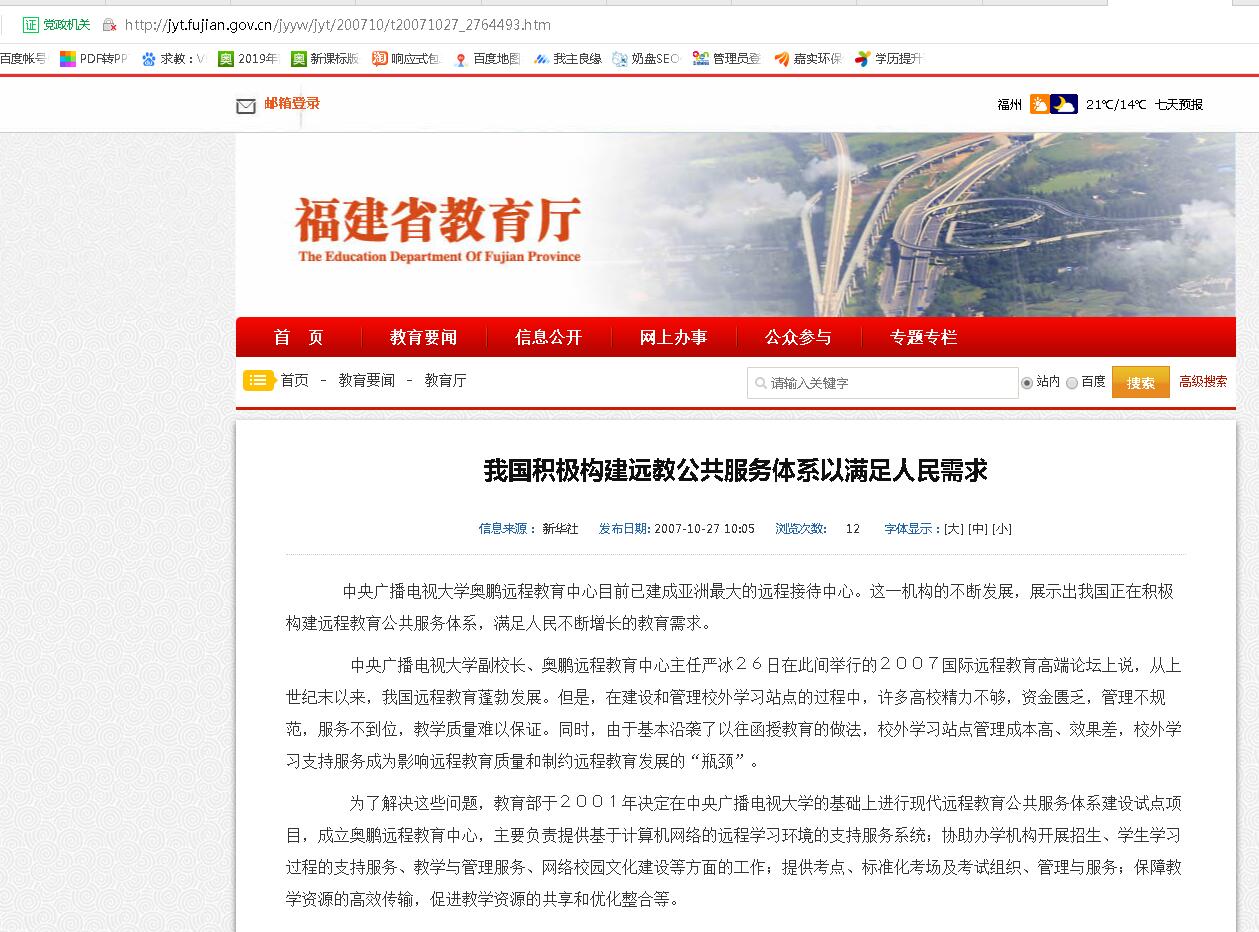 目前泉州奥鹏教育属于公共服务体系,在福建省教育厅备案,高校阳光平台可以查询到招生授权。奥鹏远程教育20年来,可选择报读国家认可的68所远程教育高校,学费统一按照学校要求收取,选择泉州奥鹏教育报读取得高校毕业学历,学历国家承认,学信网可查。如果你不放心可以去中国教育在线远程教育频道进行信息查询,这是教育部主管的网站,信息权威可靠。也可以去高校授权中心查询奥鹏教育是否为该校校外学习中心。以下是福建省教育厅查询奥鹏教育相关备案信息: