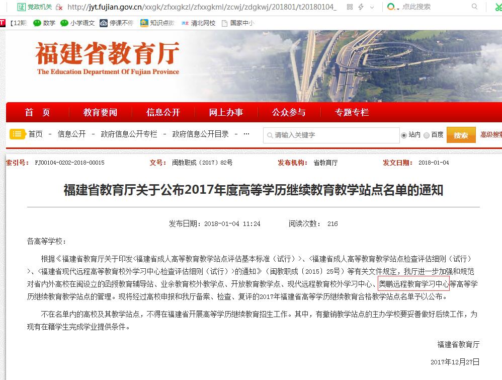 目前福州奥鹏教育属于公共服务体系,在福建省教育厅备案,高校阳光平台可以查询到招生授权。奥鹏远程教育20年来,可选择报读国家认可的68所远程教育高校,学费统一按照学校要求收取,选择福州奥鹏教育报读取得高校毕业学历,学历国家承认,学信网可查。如果你不放心可以去中国教育在线远程教育频道进行信息查询,这是教育部主管的网站,信息权威可靠。也可以去高校授权中心查询奥鹏教育是否为该校校外学习中心。以下是福建省教育厅查询奥鹏教育相关备案信息: