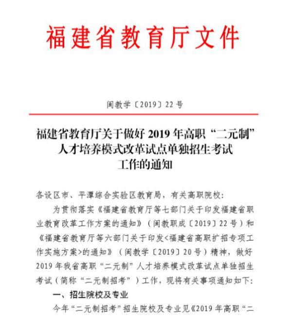 《福建省教育厅关于进一步加强高职教育“二元制”人才培养模式改革试点项目管理的通知》(闽教职成〔2018〕50号)