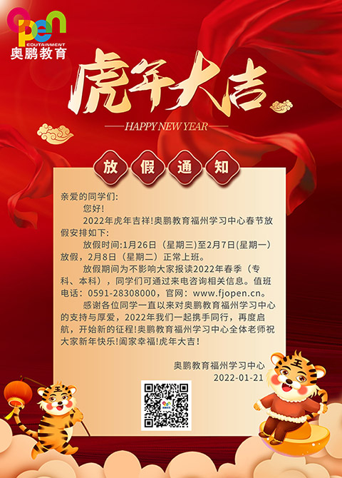 一、春节假期时间安排:2024年1月26日(周三)—2024年2月7日(周一),2月8日(星期二)正式上班。